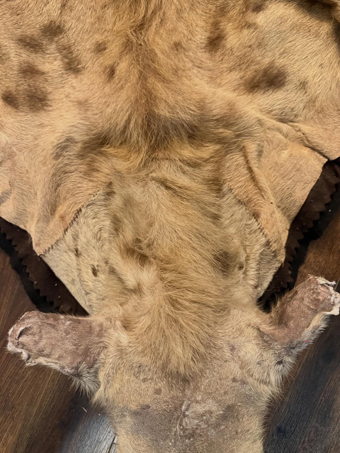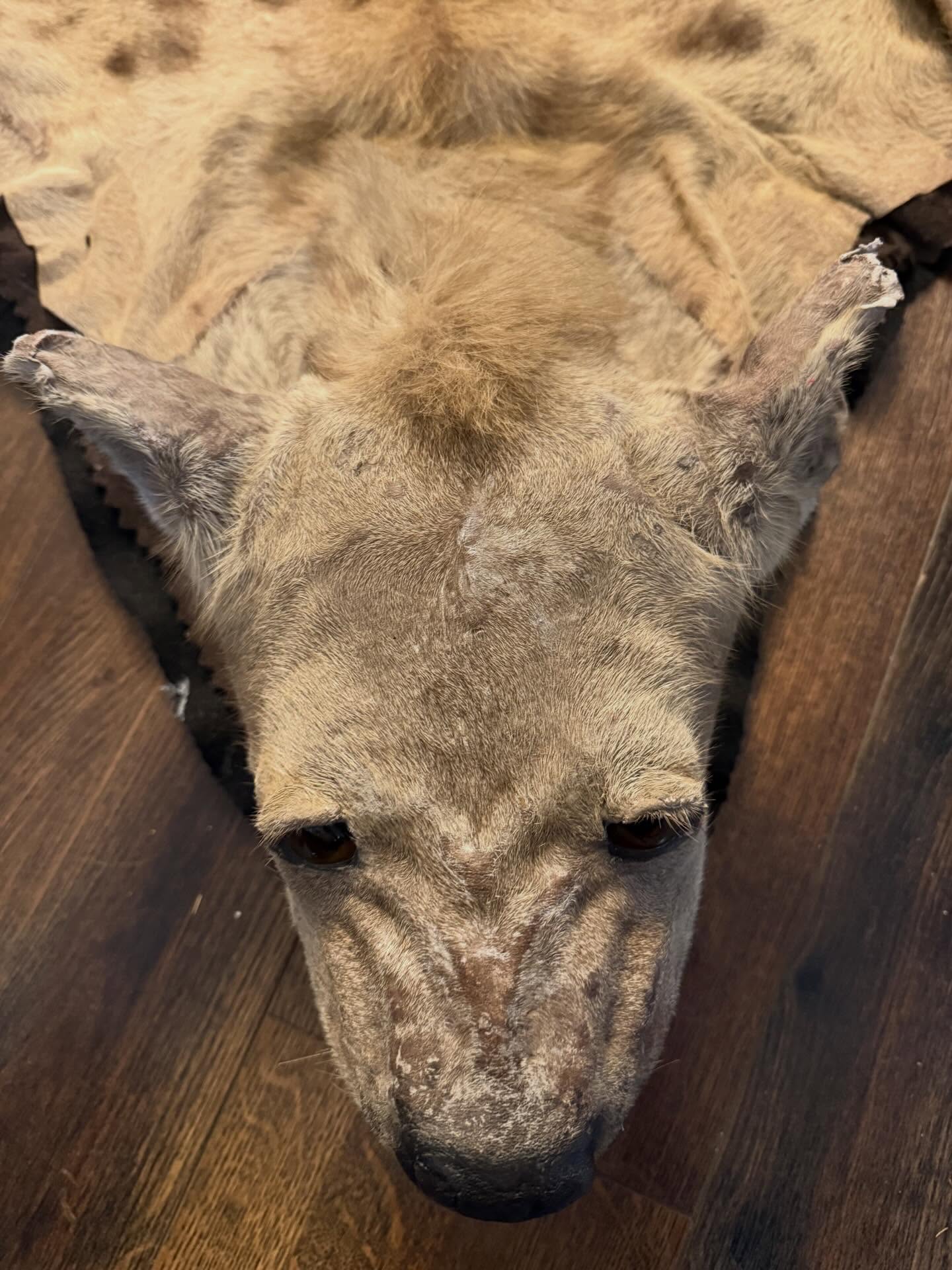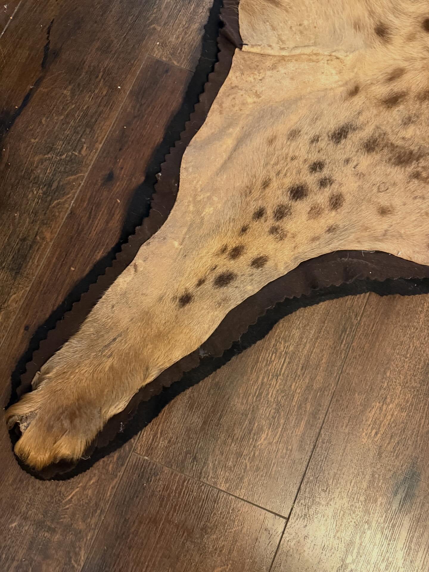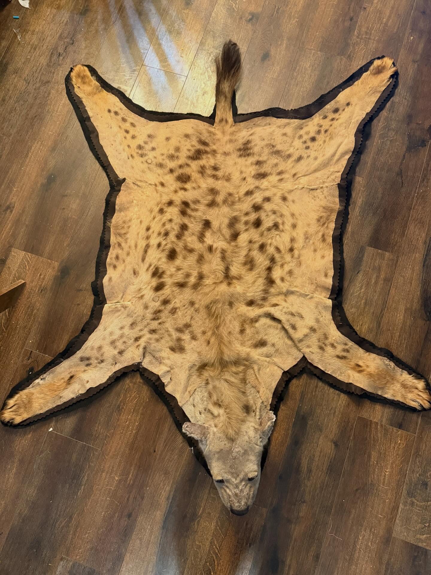 A rare and conversation-worthy acquisition, this 66-inch vintage spotted hyena rug combines authenticity, presence, and collectible value.