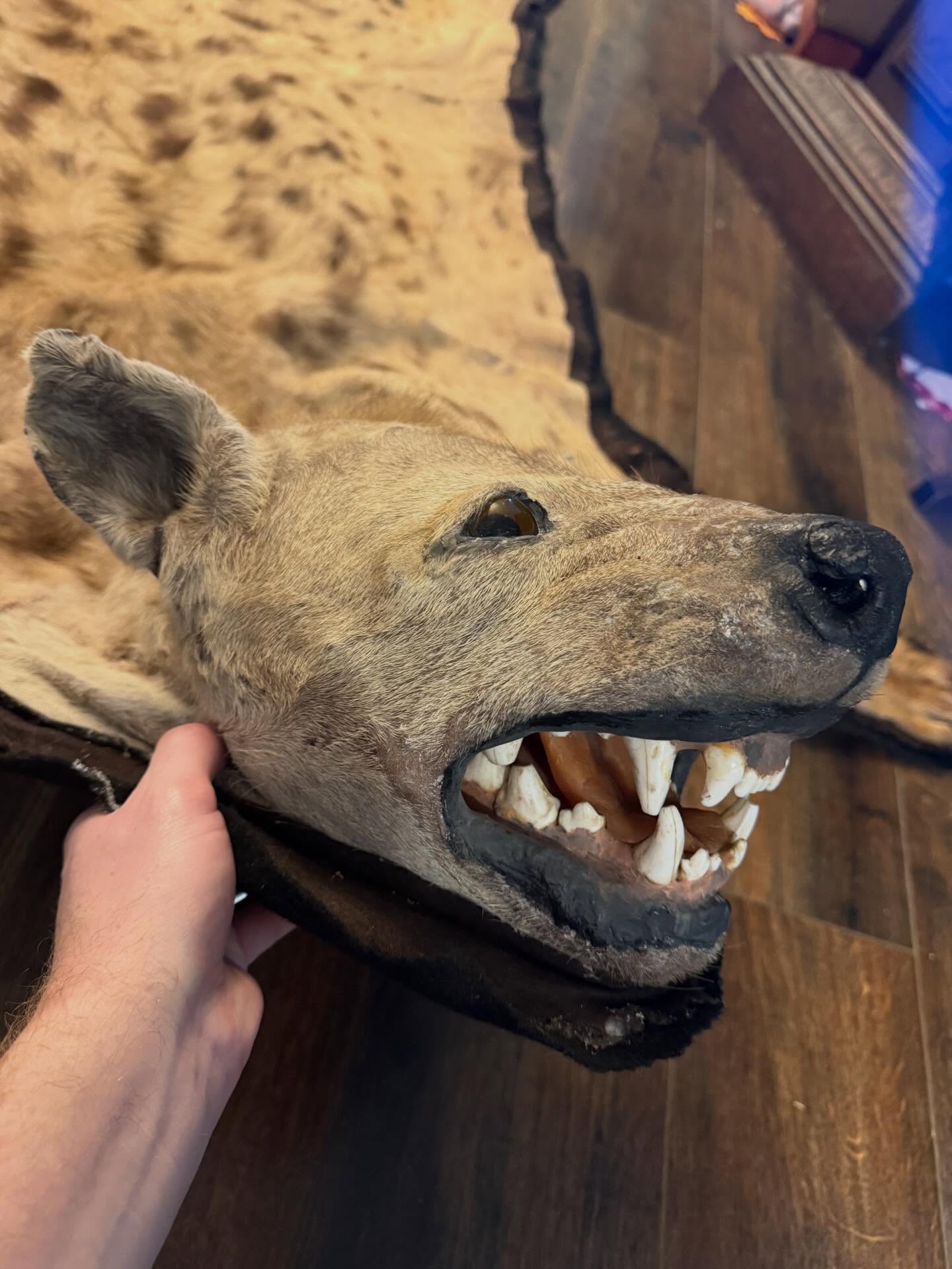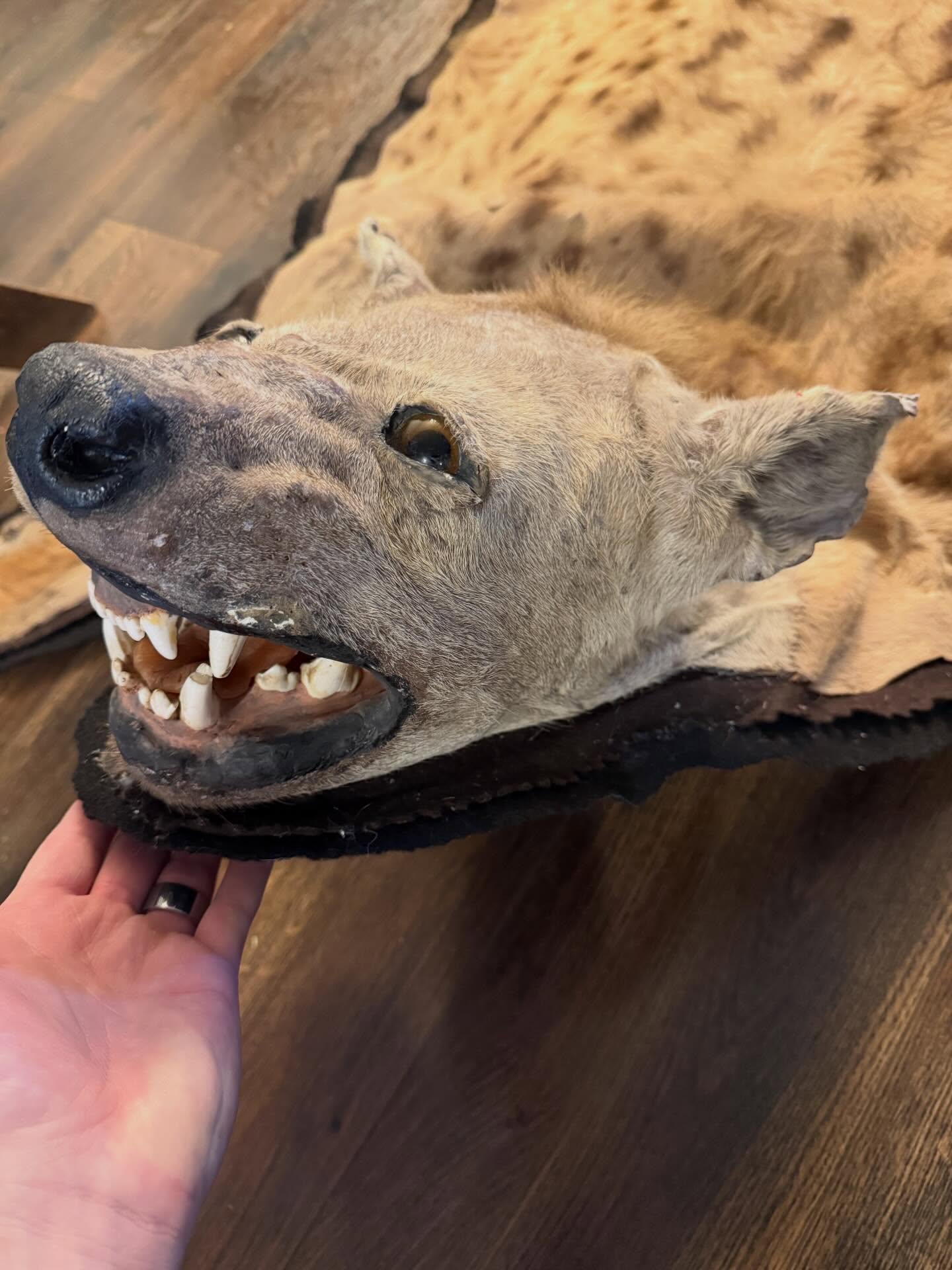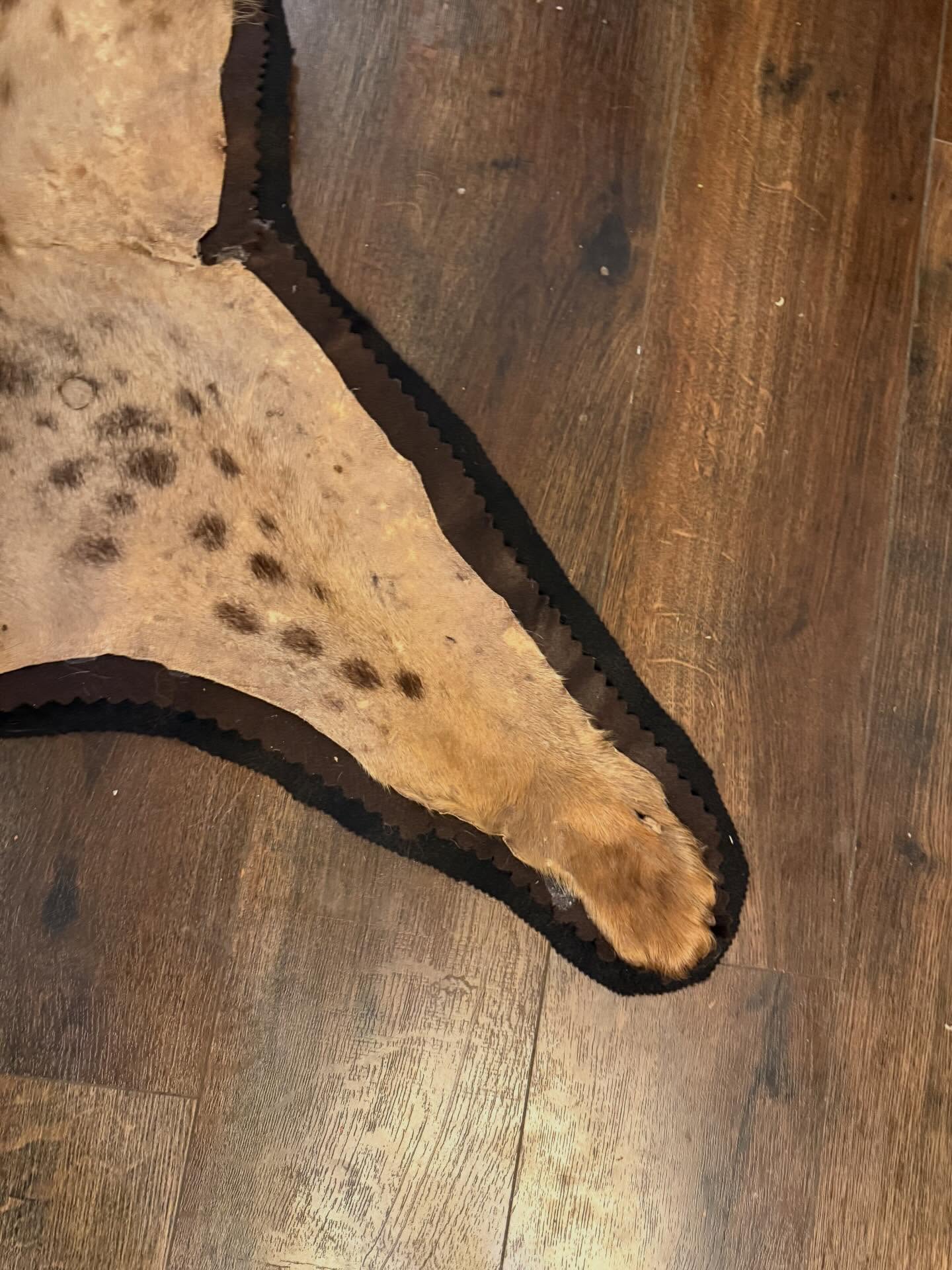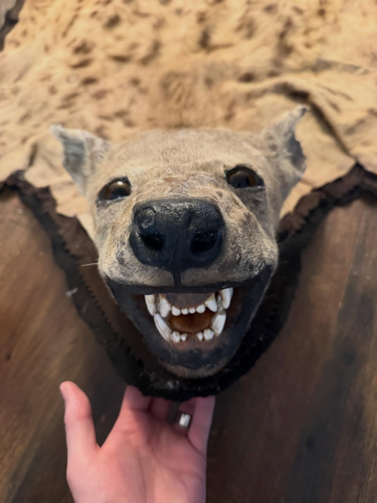 A rare and conversation-worthy acquisition, this 66-inch vintage spotted hyena rug combines authenticity, presence, and collectible value.