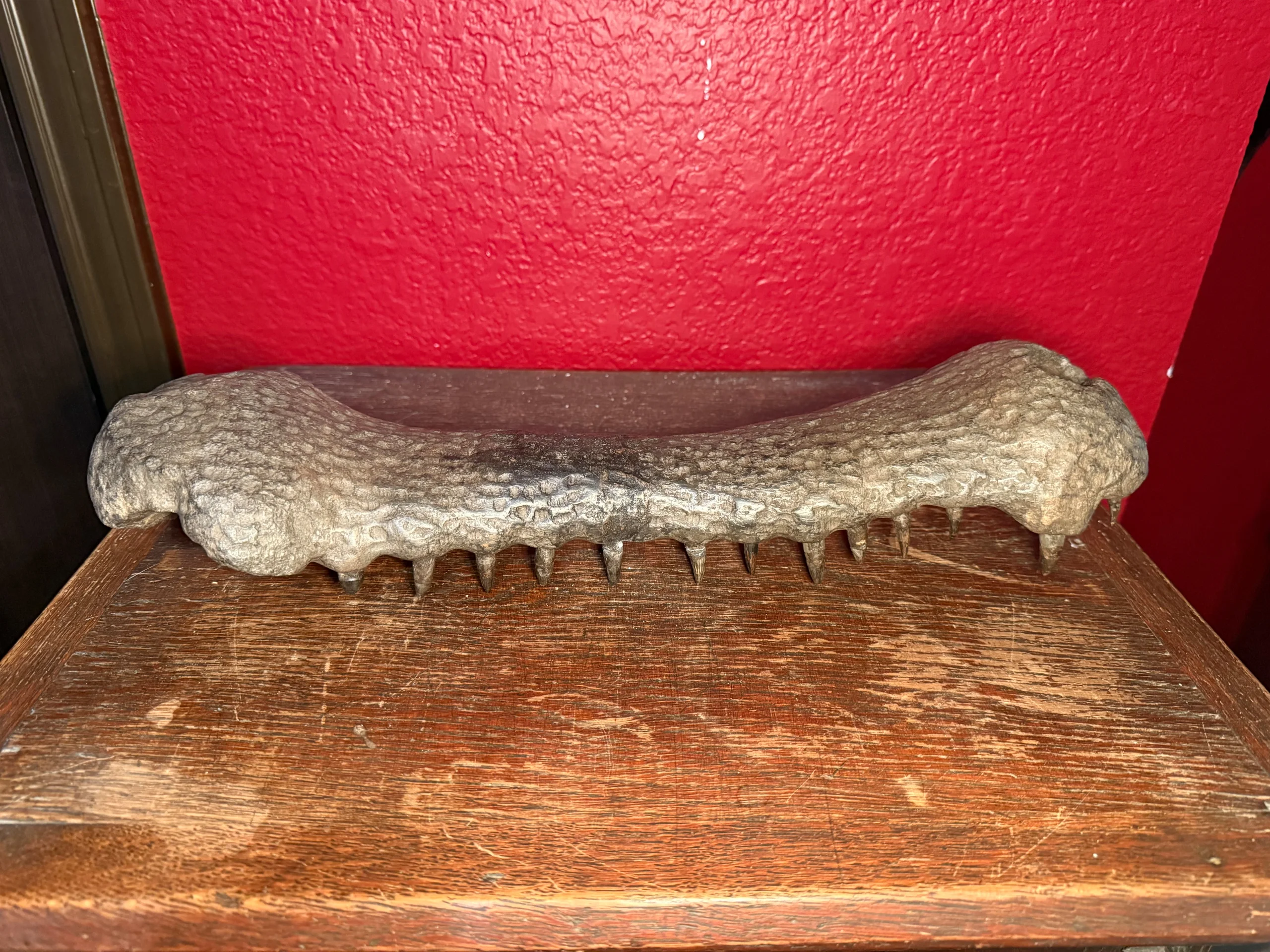 This well-preserved crocodile skull fossil offers a rare opportunity to acquire an authentic Ice Age reptile specimen with outstanding dental preservation and strong display presence.