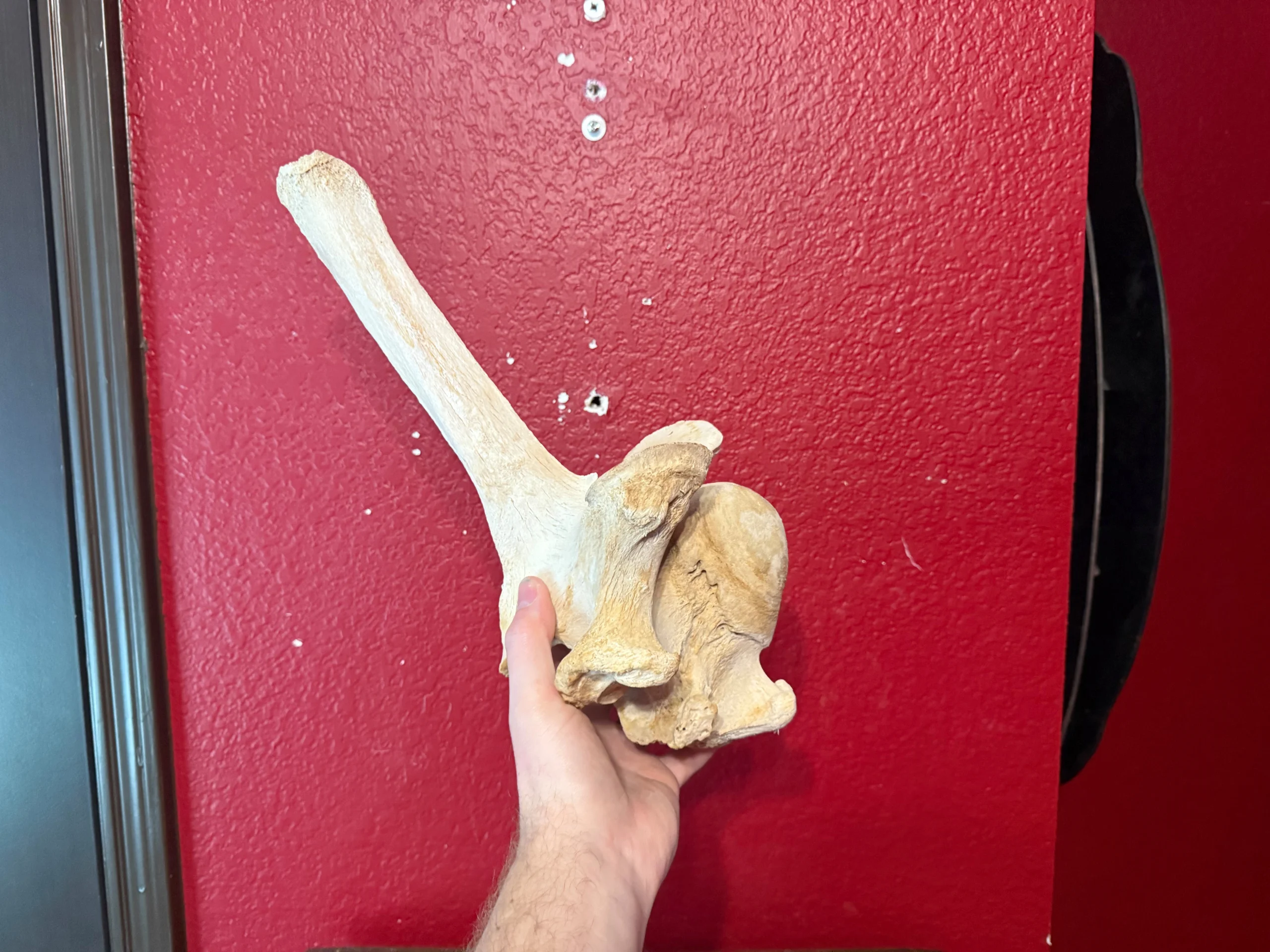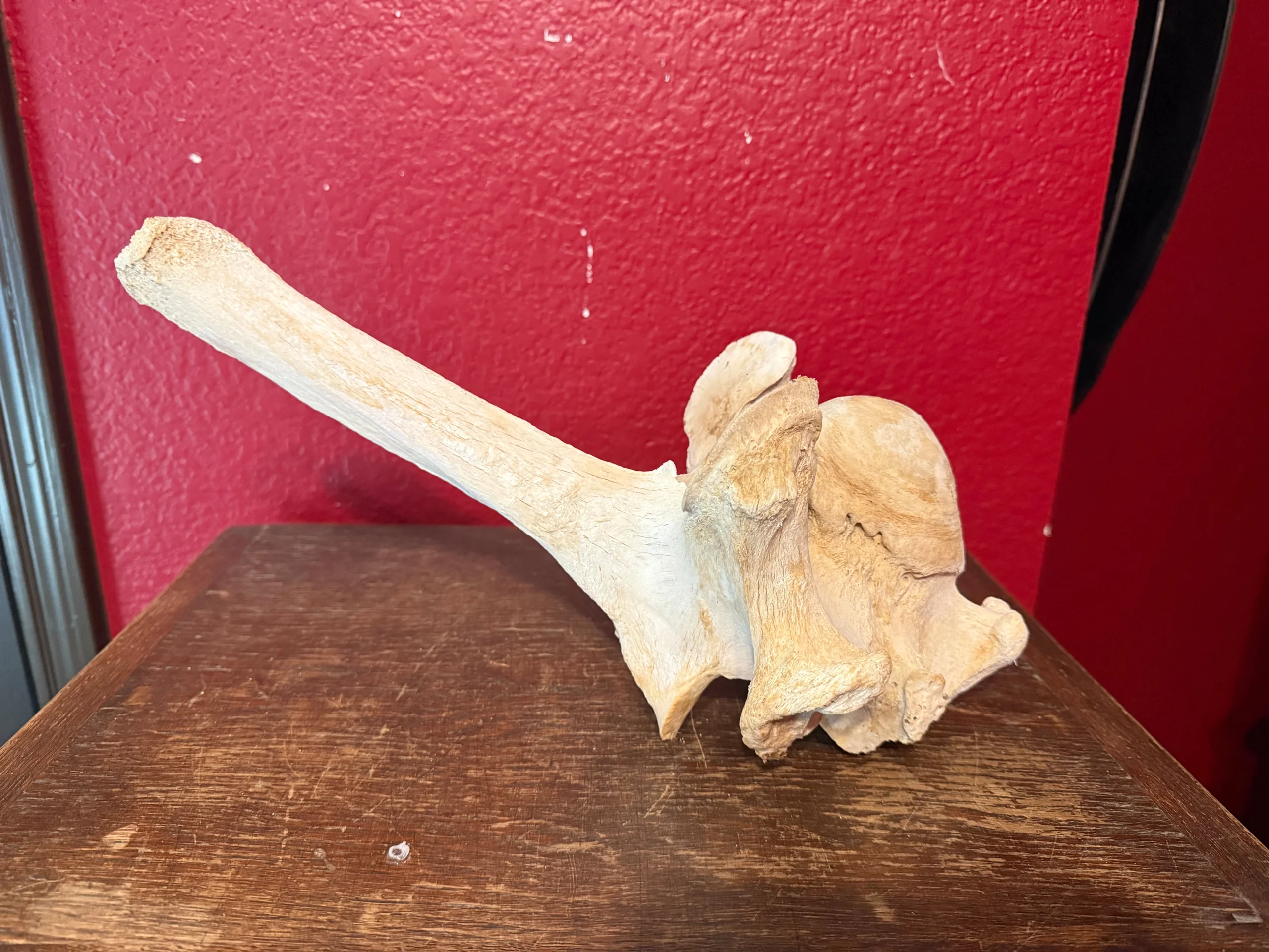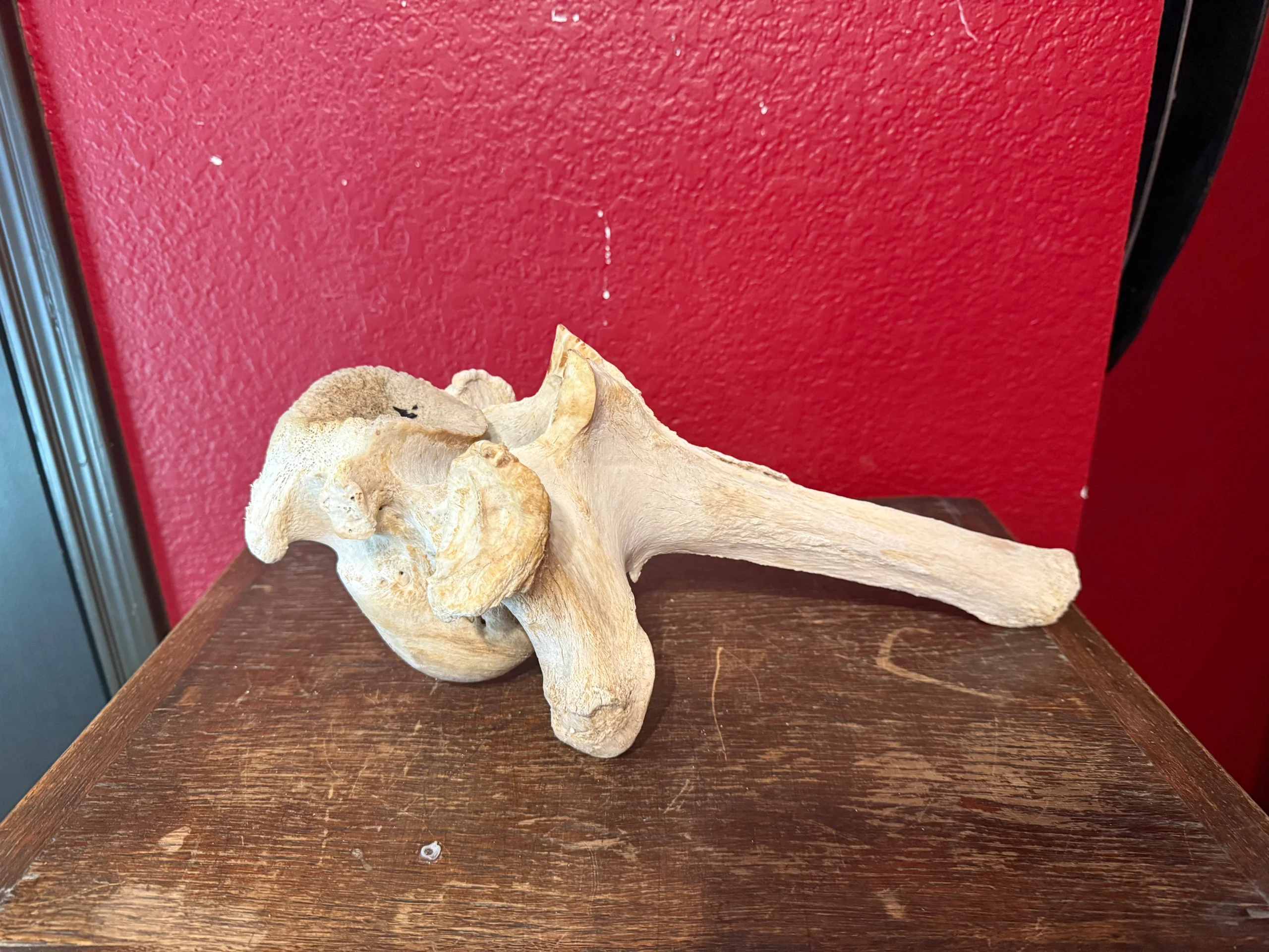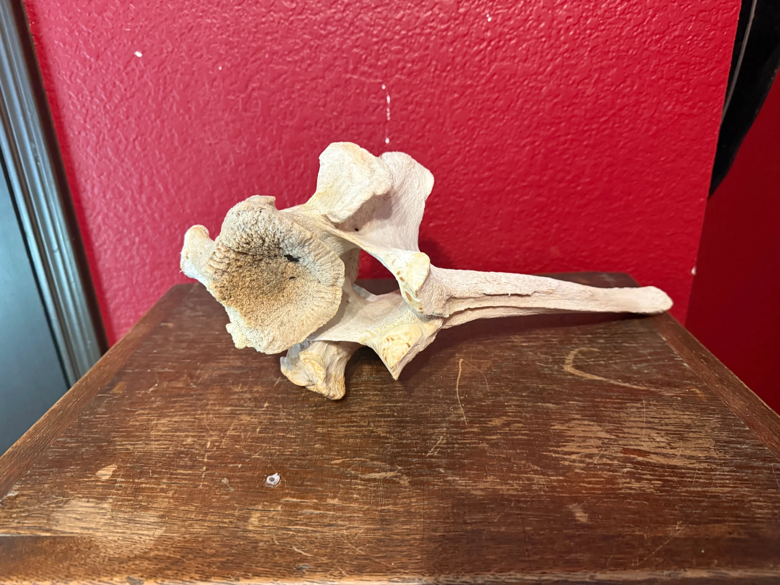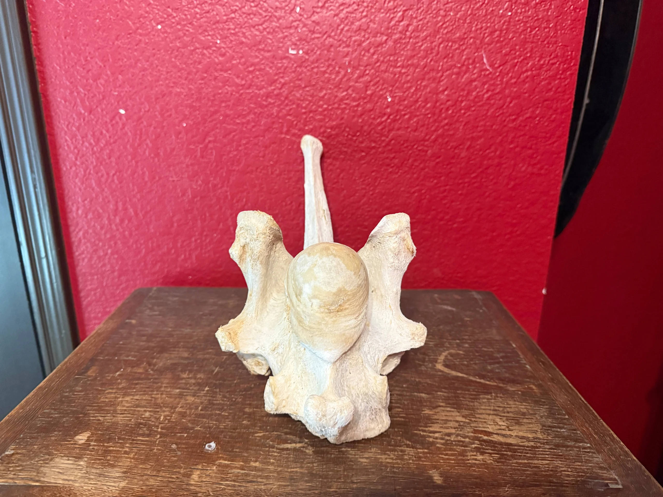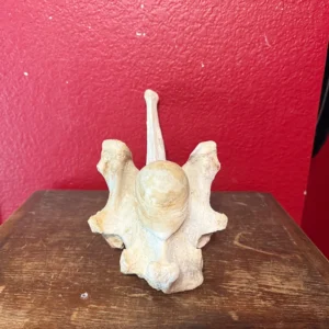 This is a cleaned giraffe backbone. This is the last backbone that connects to the base of the neck.