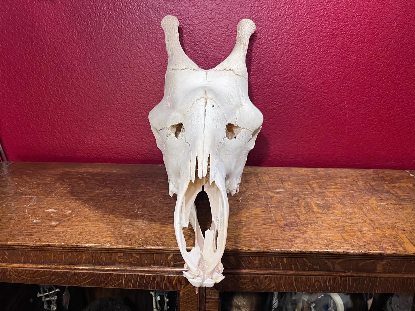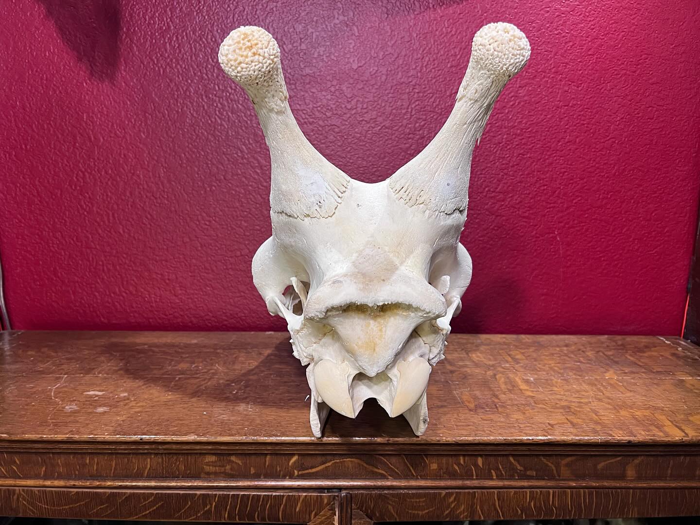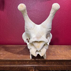 This authentic giraffe skull (Giraffa camelopardalis) is an impressive and uncommon natural history specimen, imported from South Africa as part of our most recent shipment. While classified as B-Grade, the skull remains a strong and visually compelling piece, offering excellent value for collectors, educators, and display purposes.