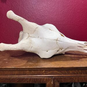 The skull measures approximately 28 inches in length, 11 inches in width, and 13 inches in height, reflecting the distinctive elongated proportions characteristic of the species. Importantly, the skull retains all of its teeth, adding to its anatomical completeness and educational significance. Minor imperfections consistent with a B-Grade classification may be present, but they do not detract from the overall integrity or display appeal of the specimen.