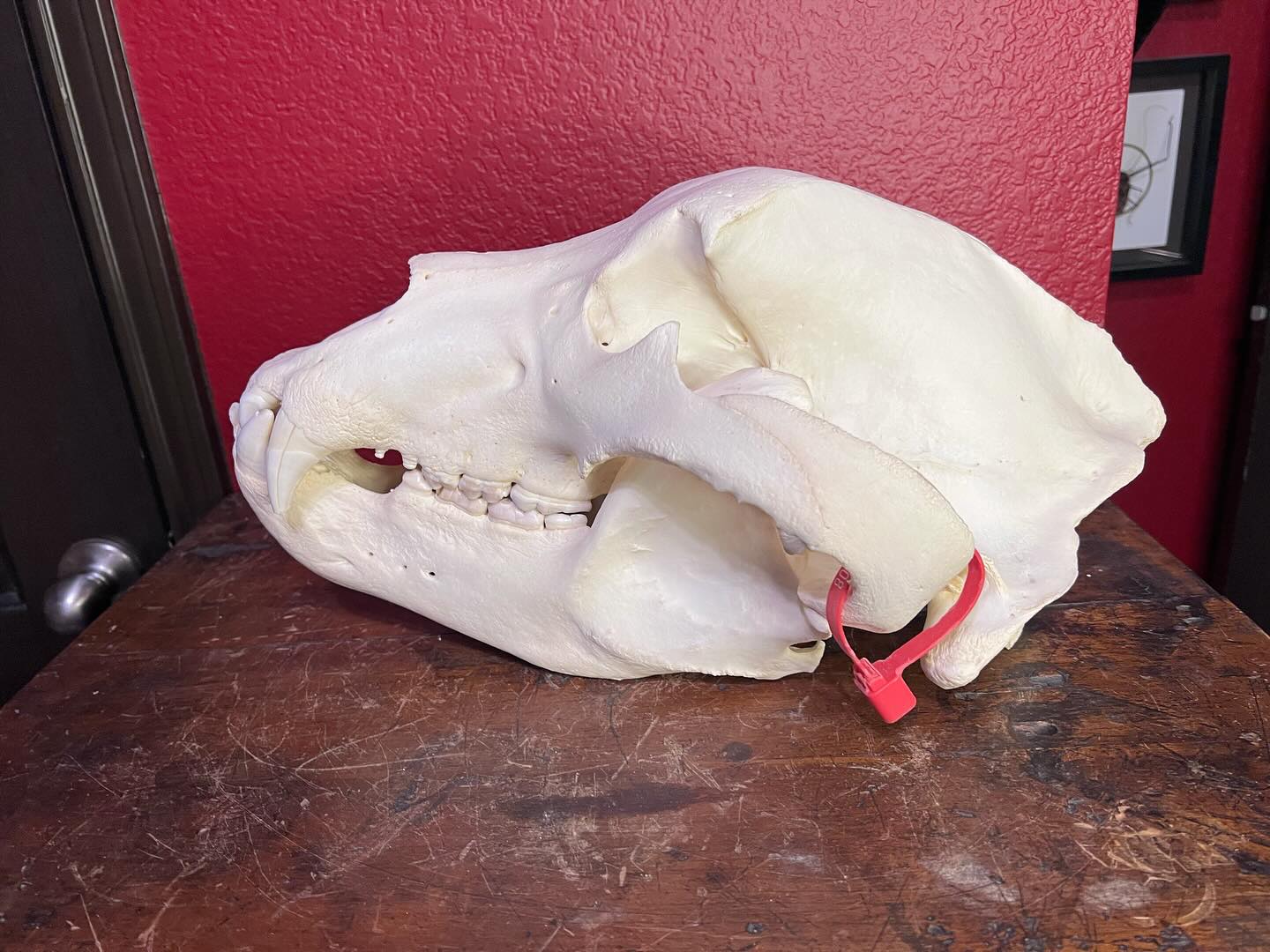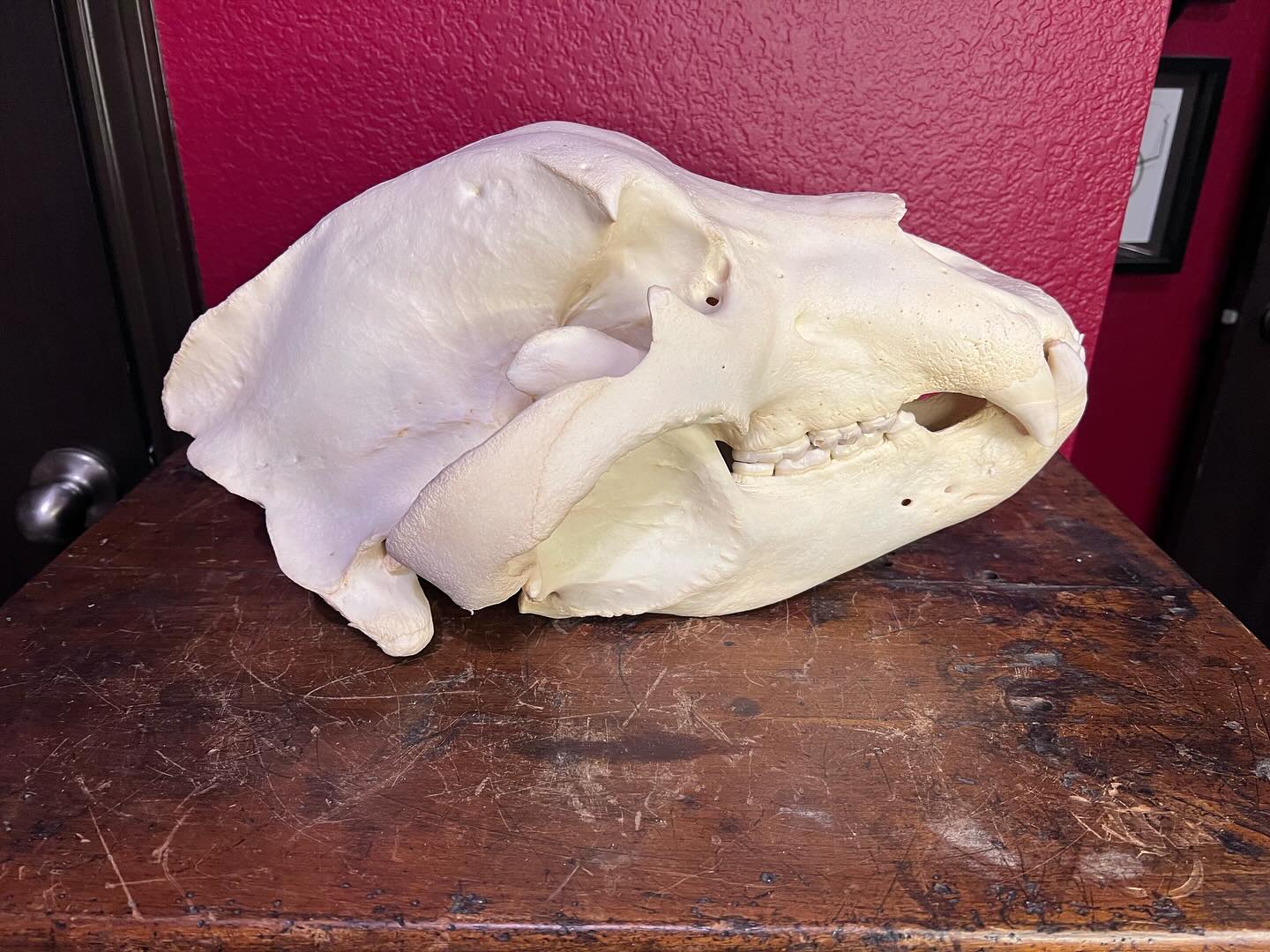 This outstanding Grizzly Bear skull (Ursus arctos horribilis) is a truly commanding specimen, distinguished by its remarkable size and powerful presence. Ideal for advanced collectors, museums, educational institutions, or high-impact display environments, this skull exemplifies the formidable anatomy of a mature grizzly bear.