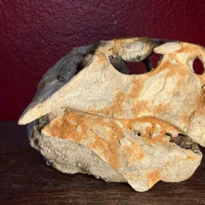This rare and exceptional Psittacosaurus skull fossil represents a remarkable example of Early Cretaceous ceratopsian anatomy. Psittacosaurus, meaning “parrot lizard,” is a small but historically significant herbivorous dinosaur, widely recognized as one of the earliest and most basal members of the ceratopsian lineage.