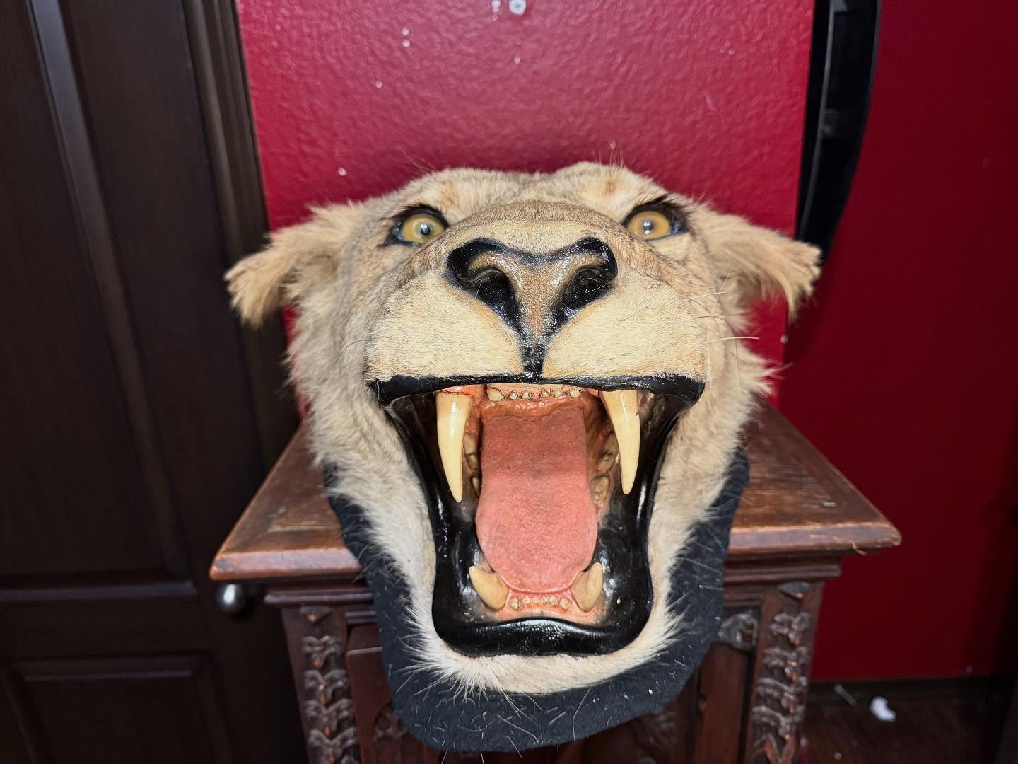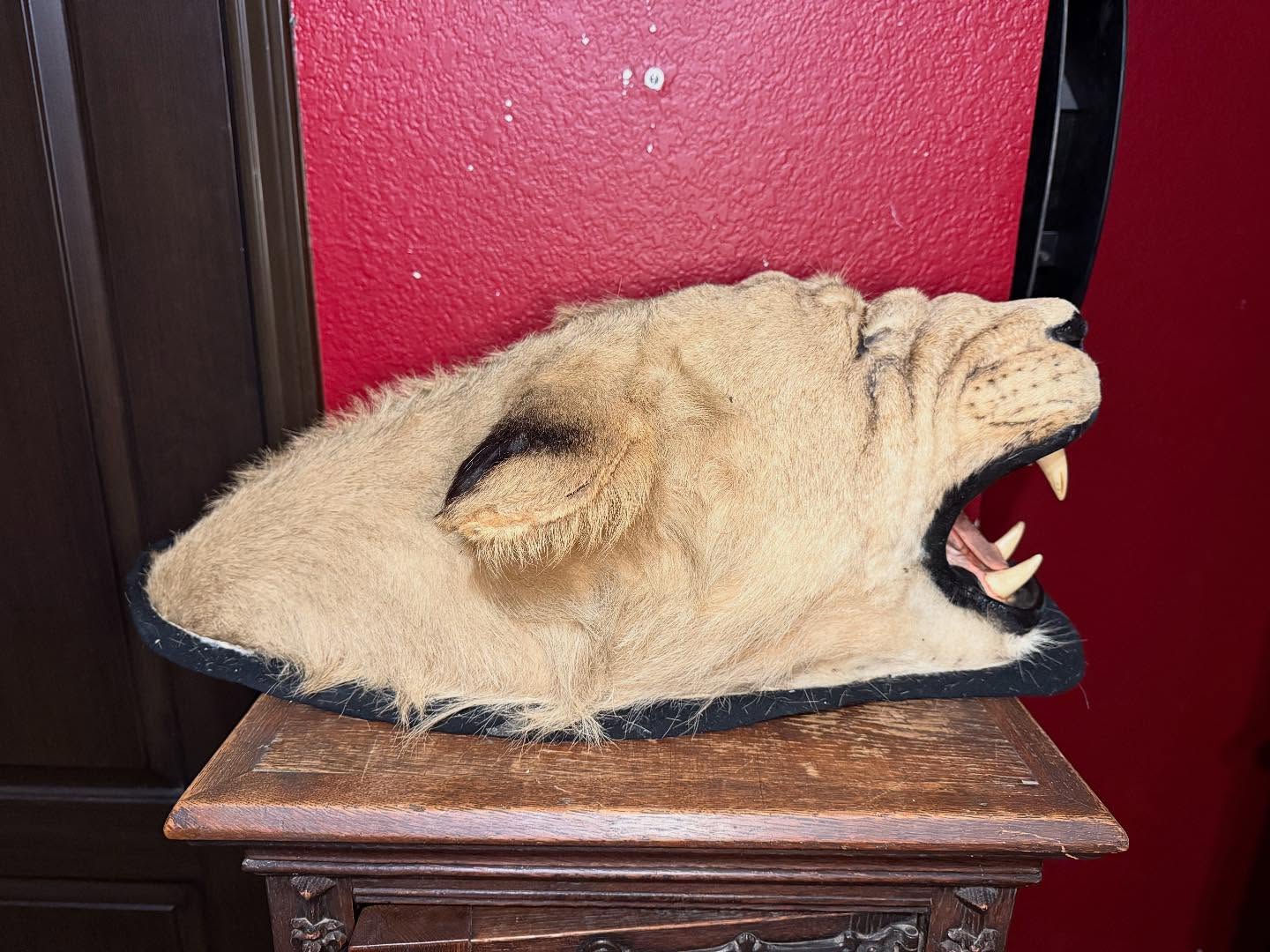 This lioness head is a rare and powerful decorative piece, ideal for collectors, interior designers, or anyone seeking an authentic vintage taxidermy display with complete legal assurance.